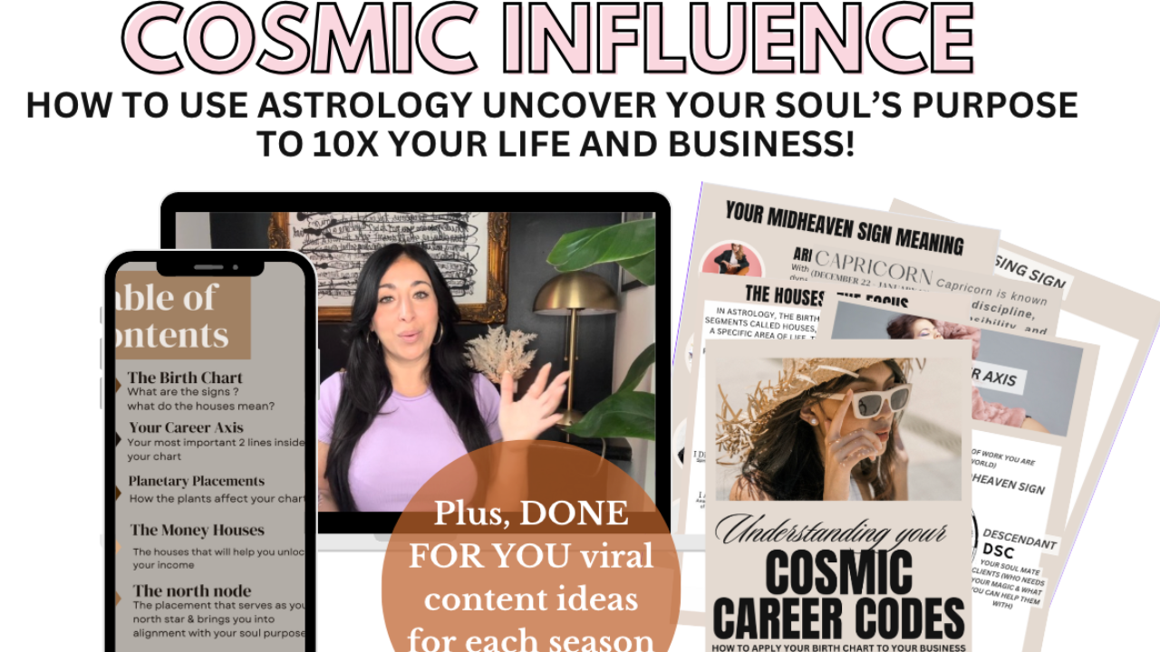 ✨YOUR BIRTH CHART BLUEPRINT: In the intro 120 minute workshop I will be taking you through your birth chart and how to unlock the codes of your birth chart to get in ALIGNMENT with your SOUL PURPOSE. PLUS, you will receive a 40 + page workbook to help you digest & unlock the information into practical understandings.